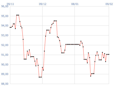 | EUR | Евро (за 1 ед.) | 91.05 руб. |