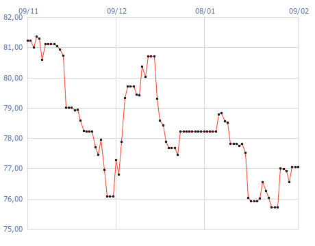 | USD | Доллар США (за 1 ед.) | 77.05 руб. |