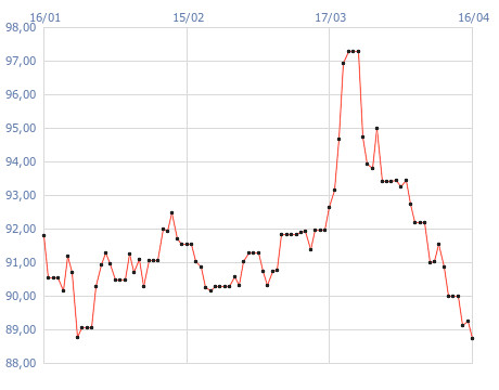| EUR | Евро (за 1 ед.) | 88.73 руб. |