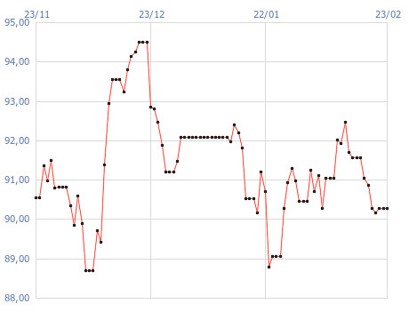 GBP Фунт стерлингов (за 1 ед.) 103.26 руб.