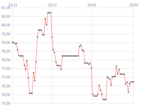 USD Доллар США (за 1 ед.) 76.75 руб.