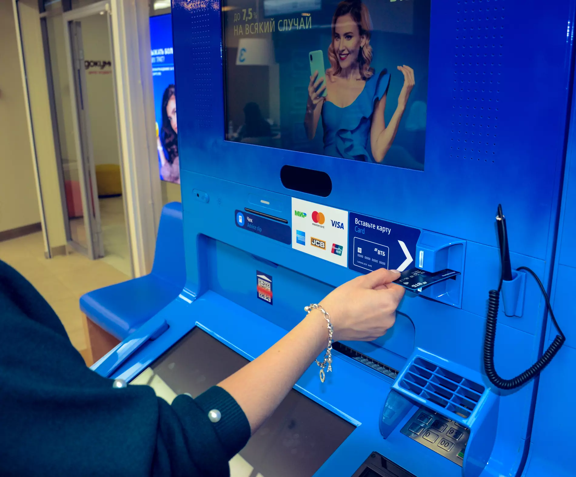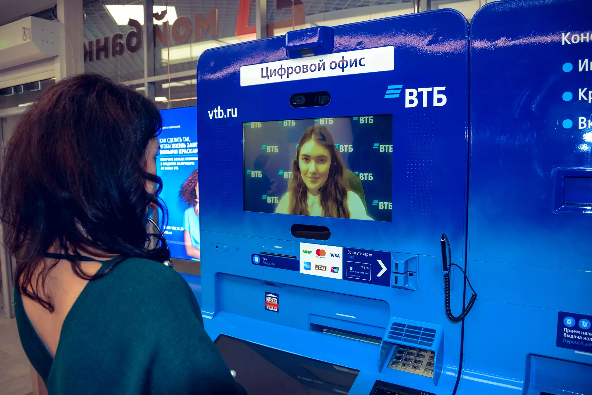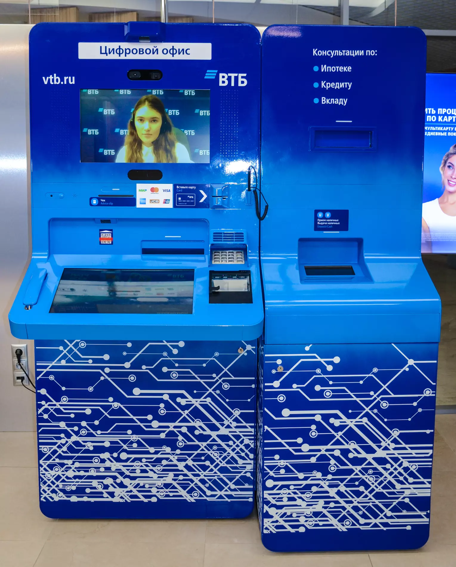 Пока новинка работает в двух отделениях ВТБ в Москве — «Афимолл» и «Цветной бульвар». Помимо возможности провести видеоконсультацию в устройстве сохранены и базовые функции банкоматов ВТБ: